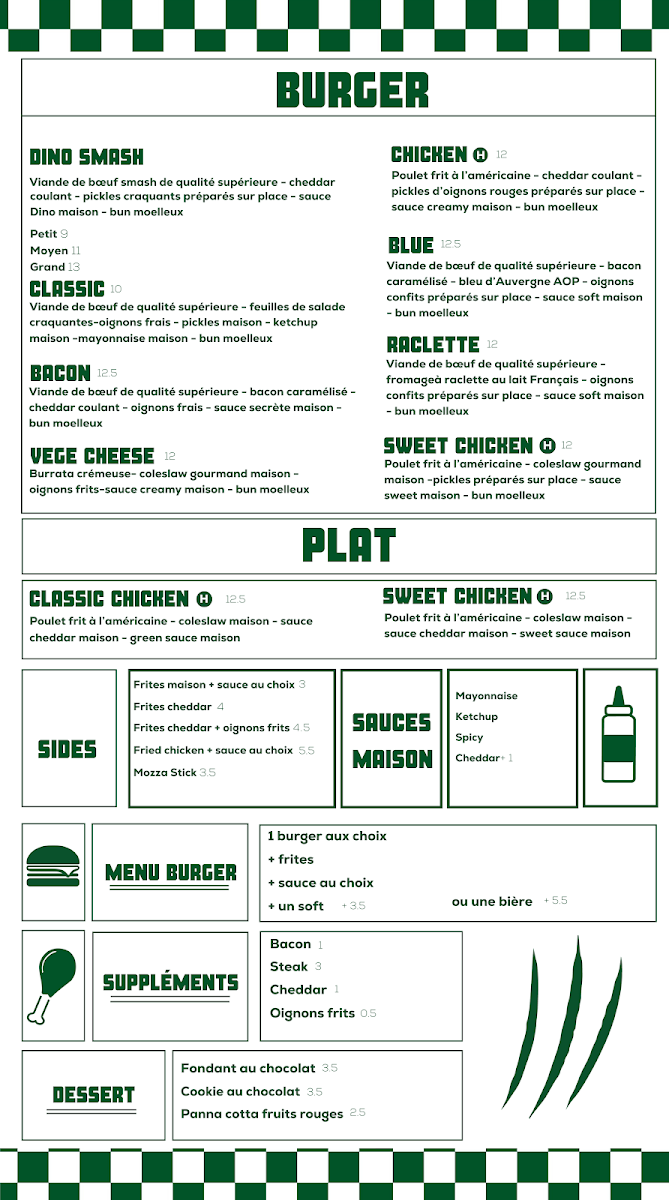In conclusion, the menu at Dino Food offers a satisfying selection of casual comfort food that focuses on hearty portions and familiar flavors, making it a reliable stop for anyone craving classic fast-food style meals. The Chicken Burger stands out as a solid choice for those who prefer a crispy, flavorful poultry option, while the Burger Bacon is a richer, more indulgent pick with its savory combination that will appeal to bacon lovers. Overall, the menu keeps things simple but effective, with a range of burgers and quick bites that are well-suited for a relaxed meal, whether dining in or taking away. The pricing remains reasonable for the portion sizes, and the variety ensures that most visitors can find something satisfying without feeling overwhelmed by too many options, making Dino Food a convenient and enjoyable spot for a casual meal.